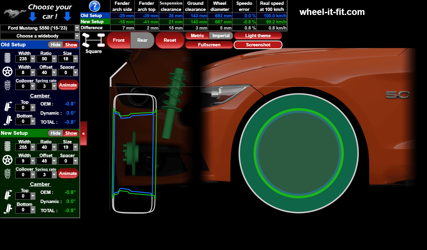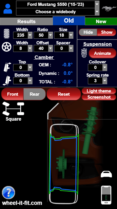 Optimize your wheel fitment with our calculator ! Simulate wheel size, offset, camber, spacers, and suspension travel.